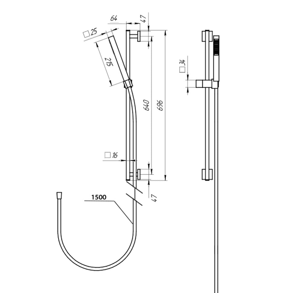 - Душевой шланг: из ПВХ, длиной 1500 мм