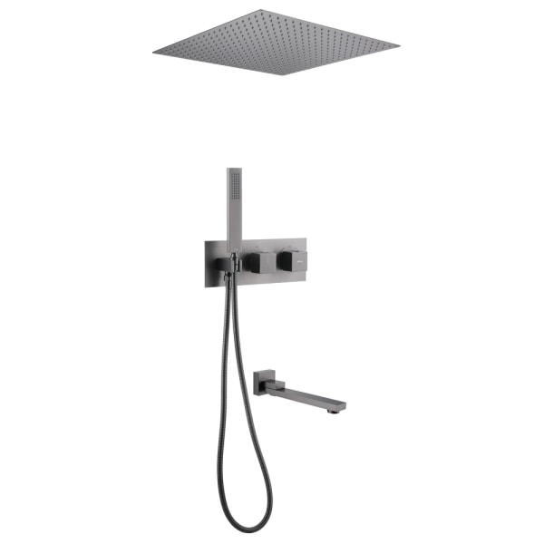 Комплект включает в себя верхний душ размером 500x500 мм с квадратной формой, который обеспечит вам комфортное и приятное принятие душа. Система против известковых отложений гарантирует, что ваш душ будет всегда выглядеть как новый, а термостатический смеситель позволит точно регулировать температуру воды, обеспечивая максимальный комфорт.