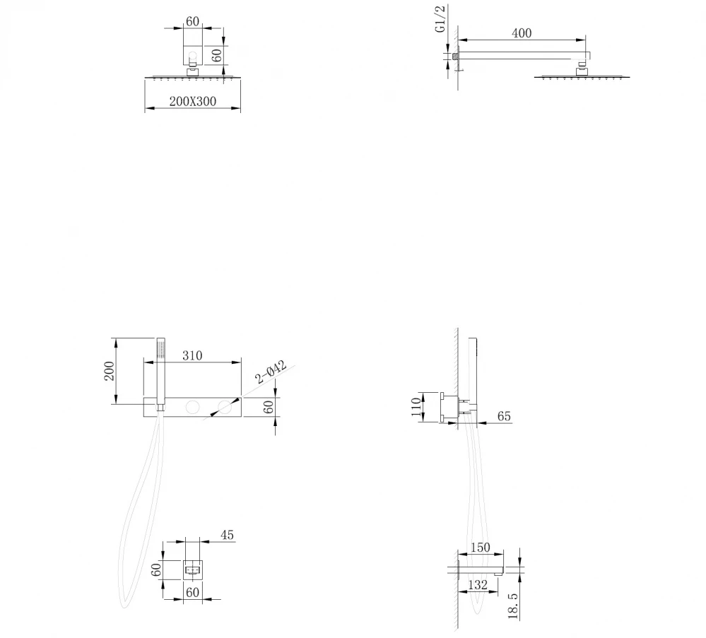 Цвет душевого комплекта — никель, что придаёт ему элегантный и современный вид. Система против известковых отложений гарантирует долговечность и простоту в уходе, а держатель для душевой лейки обеспечивает удобство в использовании. Жесткая подводка и размеры верхнего душа 300x200 мм, а также душевой лейки 200 мм делают этот комплект универсальным и практичным.