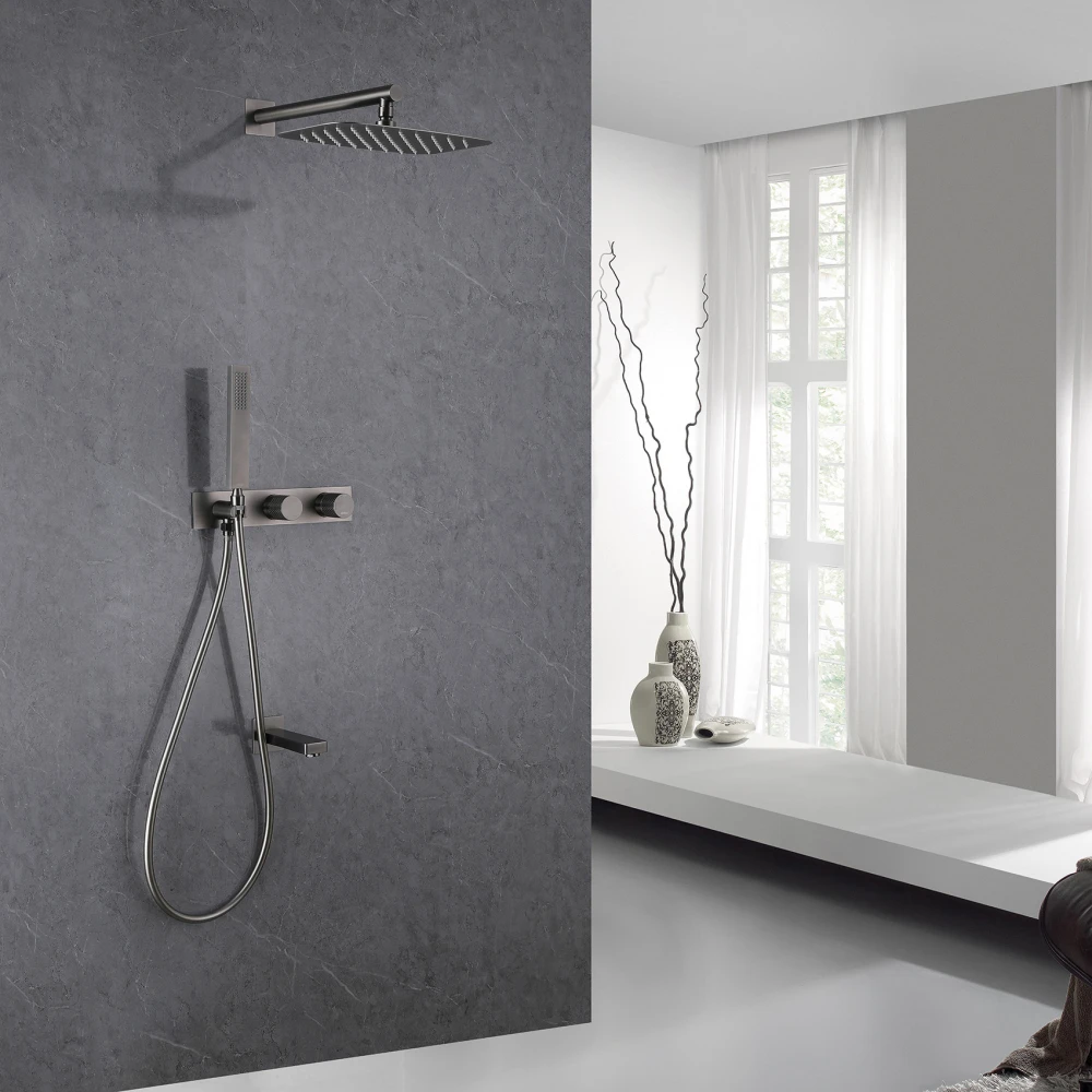 Душевая система скрытого монтажа с изливом обеспечивает не только эстетичный вид, но и удобство в использовании. Смеситель с прогрессивным картриджем — это самый современный способ управления подачей воды. Ручка смесителя поворачивается только в одну сторону, что позволяет легко регулировать напор и температуру воды. Плавное увеличение температуры защищает от ожогов и помогает экономить горячую воду, что особенно важно в условиях современного быта.