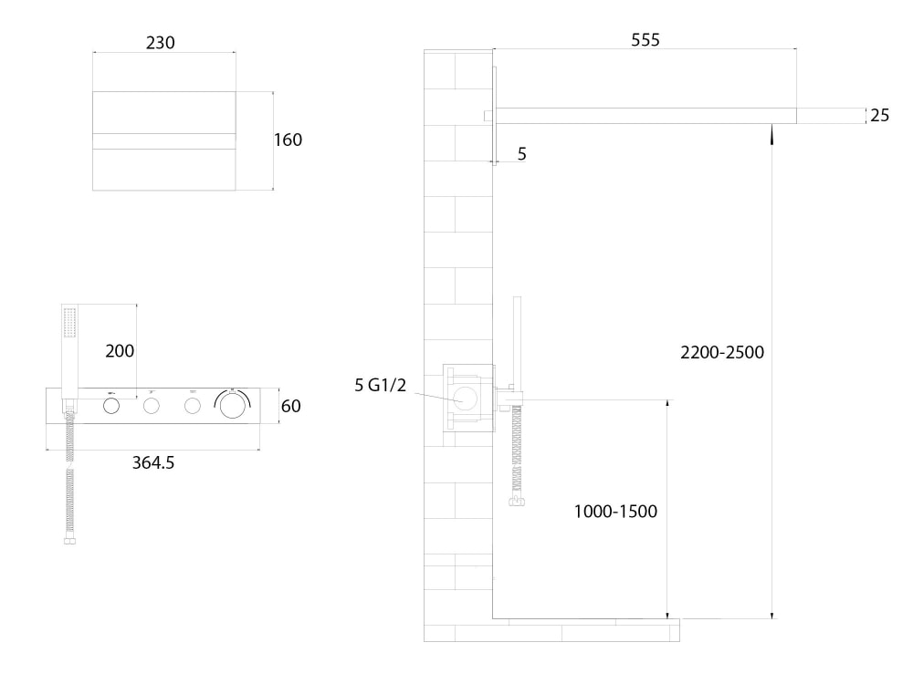 Комплект включает в себя термостатический смеситель, который обеспечивает точное управление температурой воды, а также систему против известковых отложений, что значительно упрощает уход за душевой системой. Монтаж осуществляется скрытым способом, что придает ванной комнате аккуратный и современный вид.