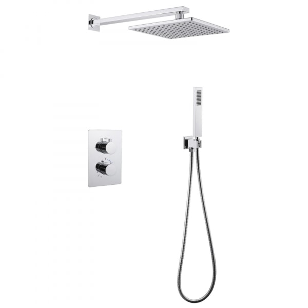 Комплект включает в себя термостатический смеситель, который позволяет точно регулировать температуру воды, обеспечивая максимальный комфорт во время принятия душа. Управление смесителем интуитивно понятное, что делает использование душа простым и удобным.