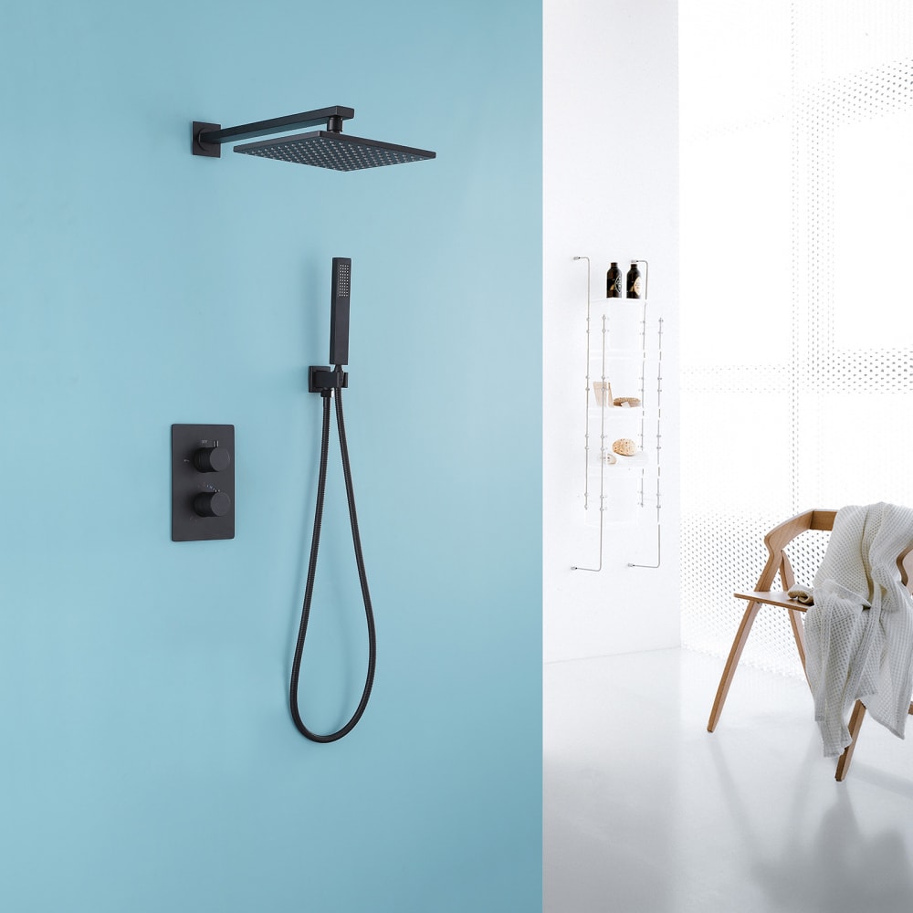 Комплект включает в себя смеситель с термостатическим управлением, что позволяет легко и точно регулировать температуру воды. Это особенно важно для обеспечения безопасности и комфорта во время принятия душа, особенно для детей и пожилых людей.