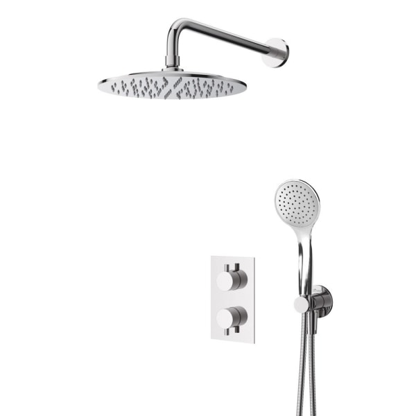 Душевая система LEAF-DSIP-T-25-01 включает в себя термостатический смеситель с дивиатором, который позволяет легко переключаться между верхним и ручным душем. Верхний душ диаметром 25 см обеспечивает комфортный и расслабляющий душ, а управление с помощью рычага делает использование системы простым и удобным.