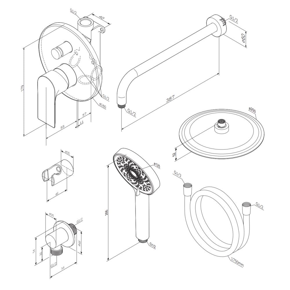 Комплект включает в себя смеситель и душевой набор с увеличенной душевой лейкой диаметром 250 мм и ручным душем диаметром 125 мм. Три режима работы ручного душа позволят вам выбрать оптимальный поток воды для бодрящего утреннего душа или расслабляющей вечерней процедуры.