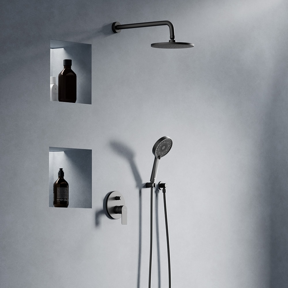 Душевая система из серии Apollo выполнена из высококачественной латуни и ABS-пластика, что обеспечивает долговечность и надежность в эксплуатации. Скрытые коммуникации делают установку максимально простой и соответствуют современным требованиям минималистичного скандинавского стиля. Никаких лишних деталей — только чистые линии и стильные формы.