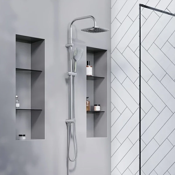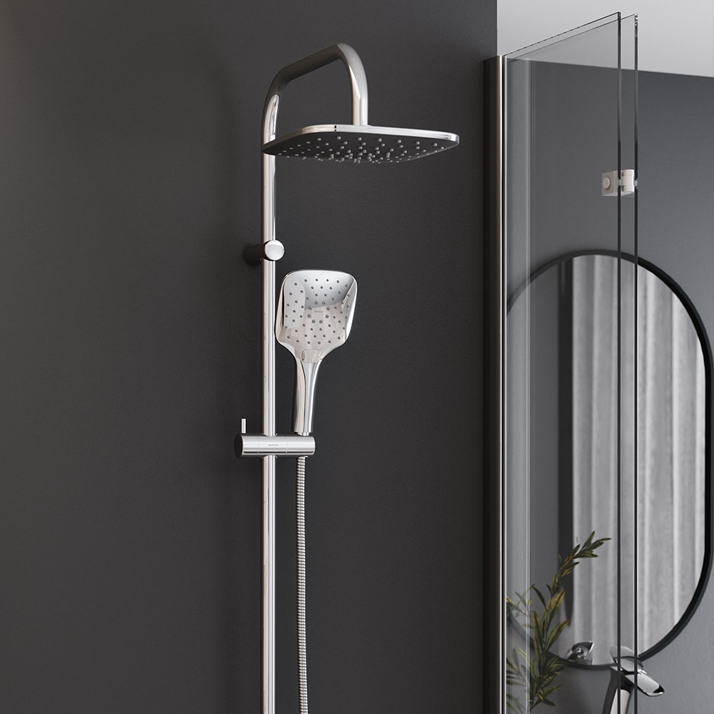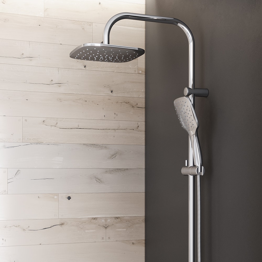 С размерами 500 мм в глубину, 1010 мм в высоту и 220 мм в ширину, этот душевой комплект идеально подходит для создания комфортного пространства. Тропический душ с диагональю 275 мм и сглаженными углами обеспечивает приятные ощущения во время принятия душа, а возможность регулировки угла наклона позволяет настроить поток воды под ваши индивидуальные предпочтения.