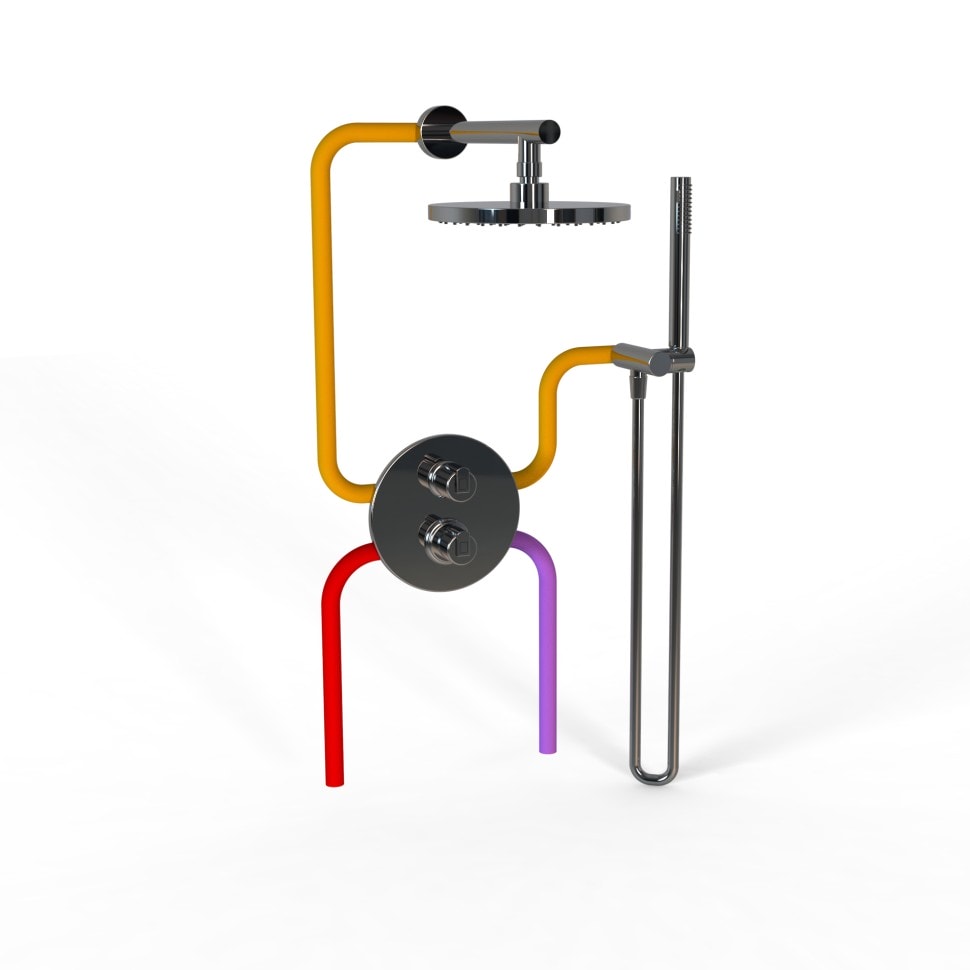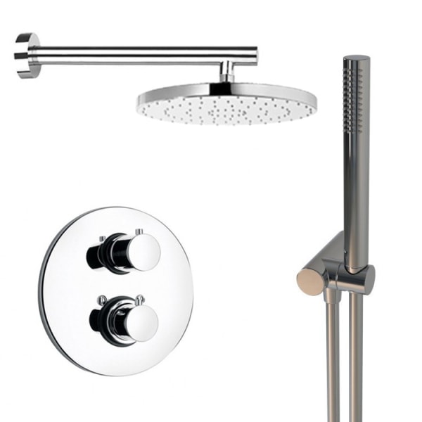 Этот душевой комплект включает в себя термостатический смеситель, который обеспечивает комфортную температуру воды и защищает от ожогов. Благодаря встраиваемому монтажу, все соединения скрыты, оставляя на виду только излив, что значительно экономит пространство в вашей ванной комнате.