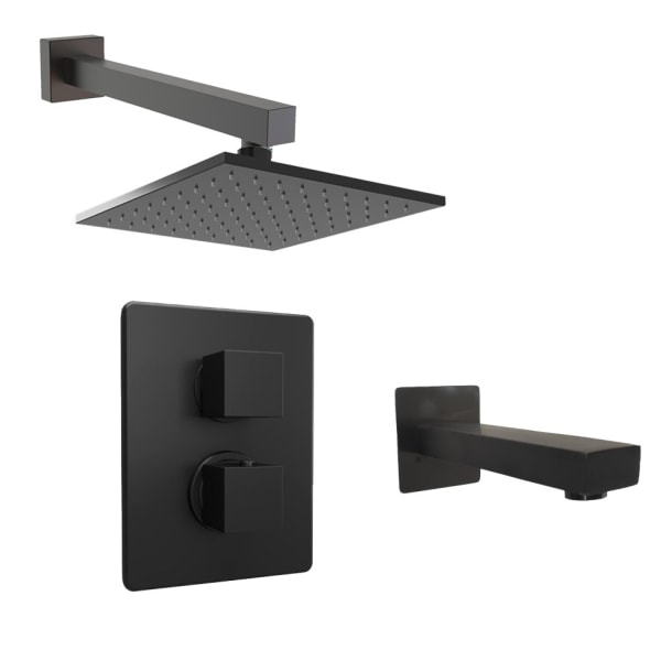 Душевой комплект включает в себя термостатический смеситель на 2 выхода, который обеспечивает комфортную температуру воды и защищает от ожогов. Внутренняя часть смесителя уже включена в комплект, что упрощает установку.