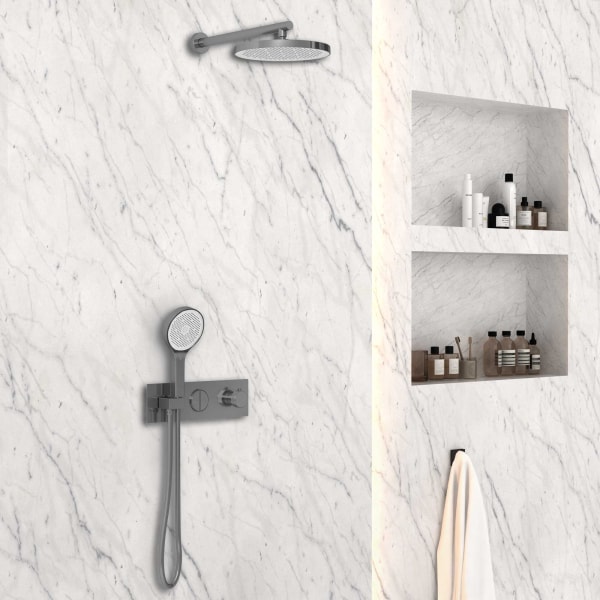 Изготовленный из высококачественной латуни, данный душевой комплект отличается прочностью и долговечностью. Элегантный дизайн вороненой стали придаст вашей ванной комнате современный и стильный вид, а также легко впишется в любой интерьер.