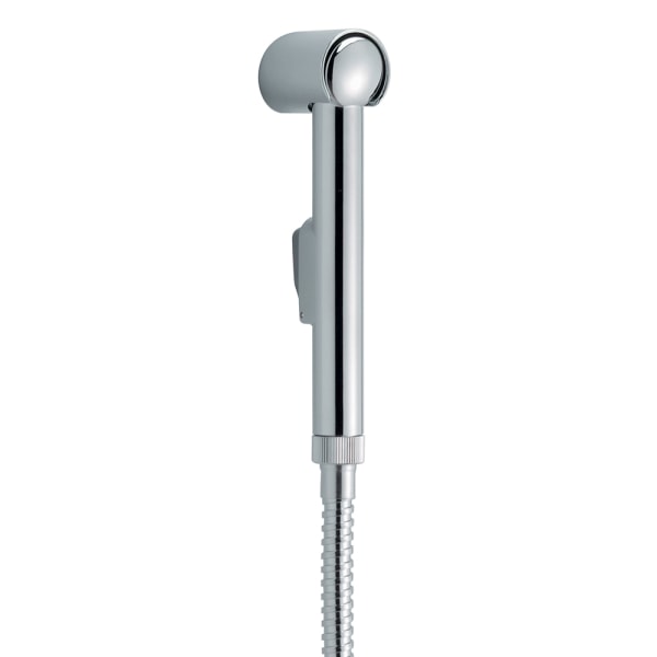 Комплект включает в себя гигиенический душ с держателем и шлангом длиной 1500 мм, который оснащен защитой от перекручивания. Это обеспечивает максимальный комфорт при использовании и предотвращает запутывание шланга. Кроме того, функция Rub Clean позволяет легко удалять известковый налет с насадки душа без применения агрессивных чистящих средств, что значительно упрощает уход за изделием.