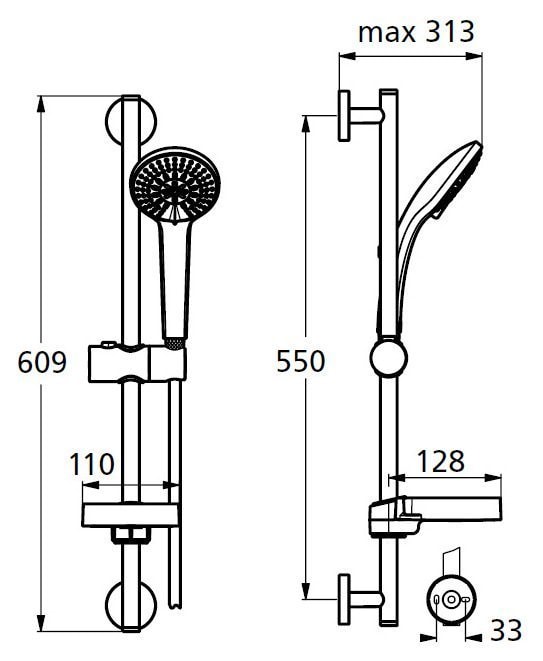 - 1-функциональной душевой лейки с диаметром 100 мм (артикул B9402AA);