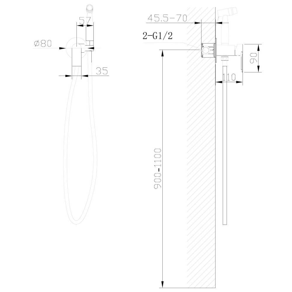 Душ выполнен из прочной латуни, что обеспечивает долговечность и надежность в эксплуатации. Его размеры (глубина — 110 мм, высота — 90 мм, ширина — 80 мм) делают его компактным и удобным для установки в любом санузле. Белый цвет придаст вашему интерьеру свежесть и элегантность.