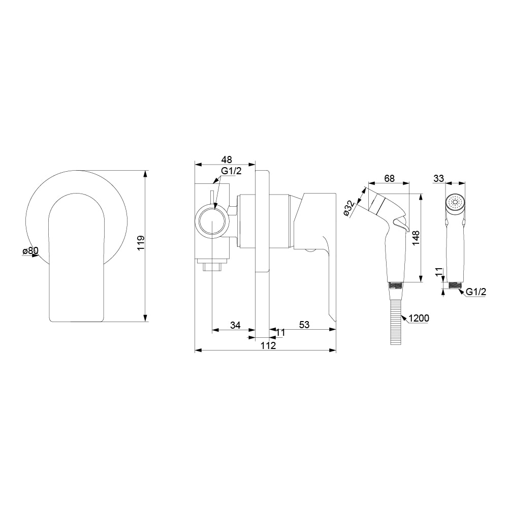 - Комплектация: душевой шланг, держатель для душа, шланговое подключение