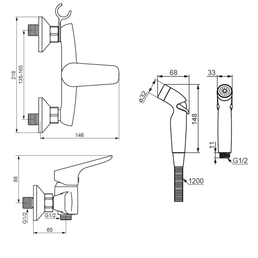 Гигиенический душ имеет компактные размеры: глубина 146 мм, высота 119 мм и ширина 218 мм, что позволяет ему занимать минимальное пространство в ванной комнате. Удобное рычажное управление позволяет легко регулировать температуру и напор воды, а керамический картридж Light Flow 25 мм обеспечивает плавную настройку.