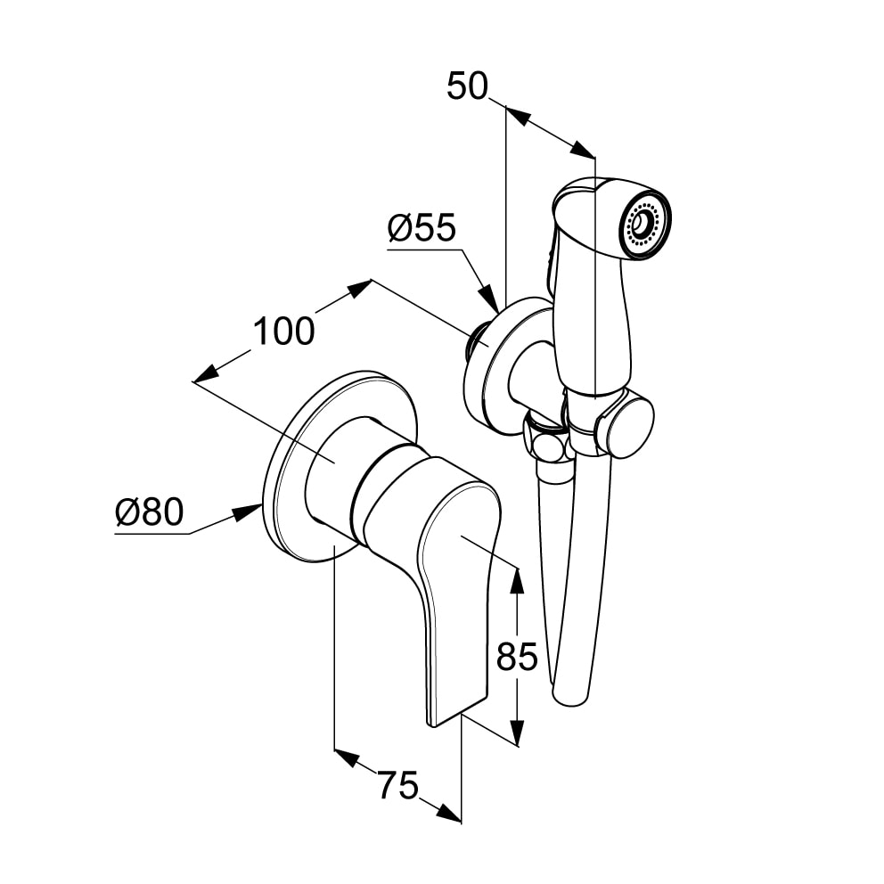 В комплект Kludi Zenta SL входят все необходимые элементы: встраиваемый смеситель, гигиенический душ с кнопкой включения воды, душевой шланг длиной 1250 мм и настенный держатель для шланга. Благодаря этому, вы получаете готовое решение, которое легко установить и использовать.