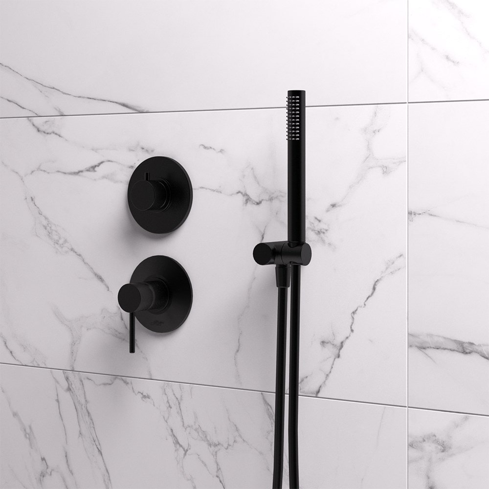 Лейка выполнена из прочной латуни и имеет округлую форму, что обеспечивает комфортное использование. Черный матовый цвет PVD придает гарнитуру стильный и современный вид, который легко впишется в любой интерьер.