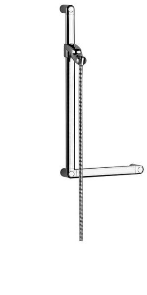 Передвижной держатель штанги оснащен бесступенчатой регулировкой, что позволяет легко изменять высоту душевой насадки в зависимости от потребностей пользователя. Держатель передвигается с помощью душевого шланга, что обеспечивает дополнительное удобство.