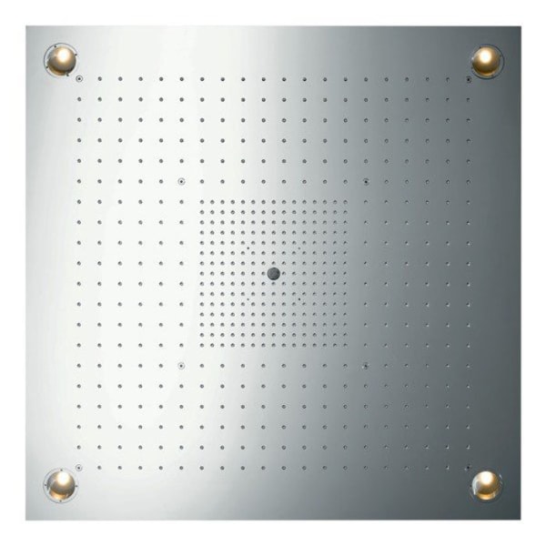 Душевое устройство оснащено тремя зонами струй: Bodyzone для внешней зоны и Rainzone с функцией AirPower для внутренней зоны. Ламинарная струя диаметром 17 мм обеспечивает равномерное распределение воды, создавая эффект дождя. Рамка из сатинированной нержавеющей стали и полированная поверхность душевого диска придают изделию элегантный вид.