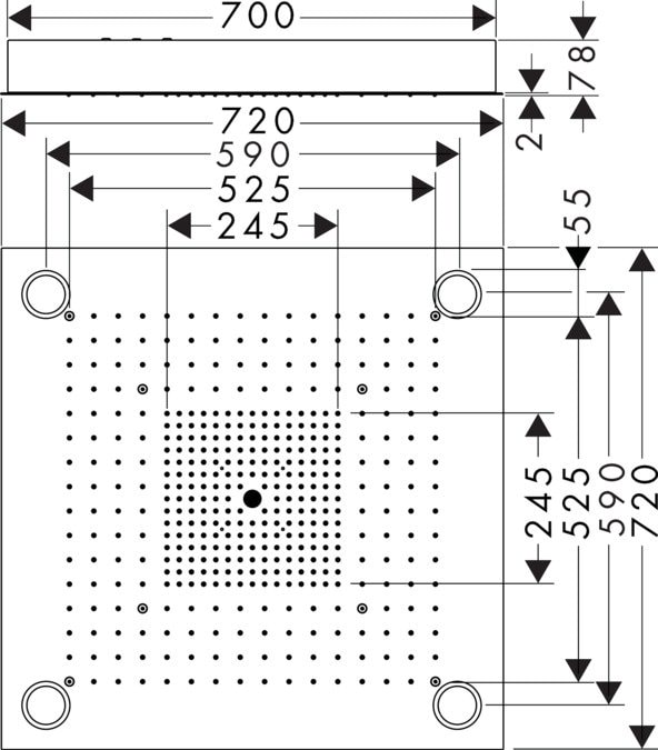 Изготовленный в Германии, верхний душ Axor ShowerCollection выполнен из высококачественного металла и имеет хромированное покрытие, что гарантирует долговечность и легкость в уходе. Размер головки душа составляет 720 x 720 мм, что позволяет создать эффект дождя, который подарит вам незабываемые моменты расслабления.