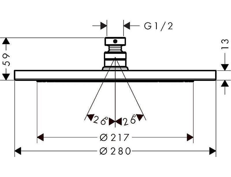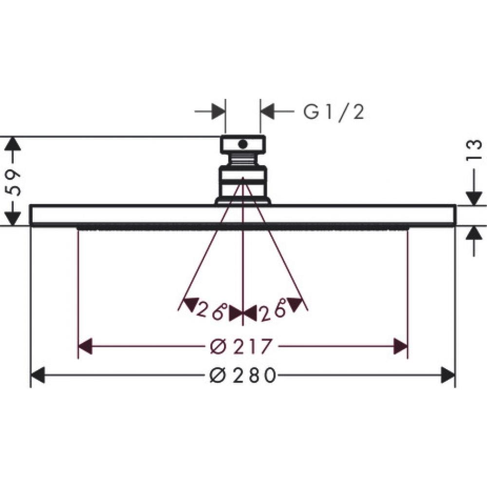 - Диаметр душевого диска: 280 мм