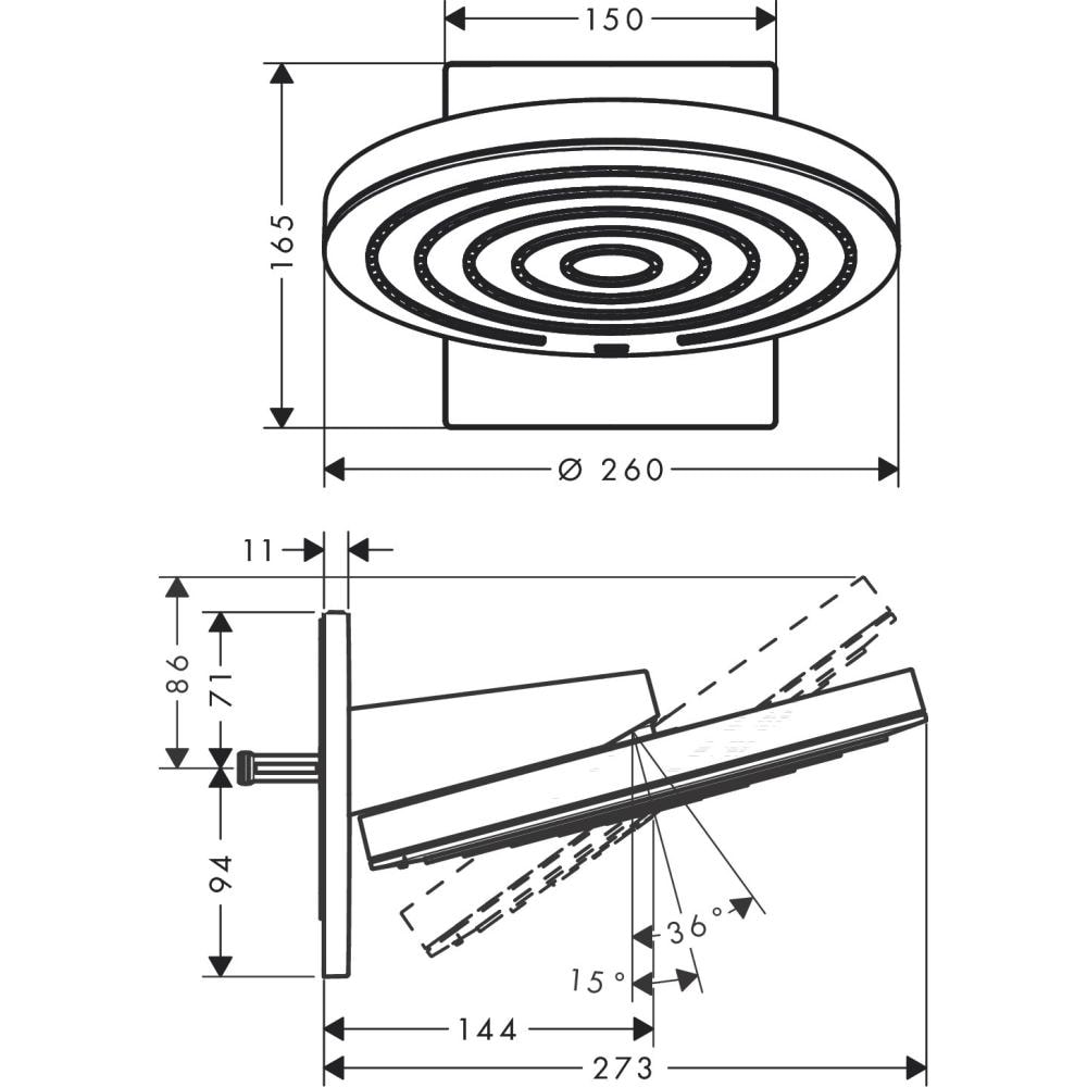 С диаметром лейки в 260 мм, верхний душ Pulsify предлагает два типа струи: PowderRain и Intense PowderRain, что позволяет вам выбрать идеальный режим для расслабляющего душа. Максимальный расход воды составляет 11,3 л/мин при давлении в 3 бара, что обеспечивает эффективное использование ресурсов.