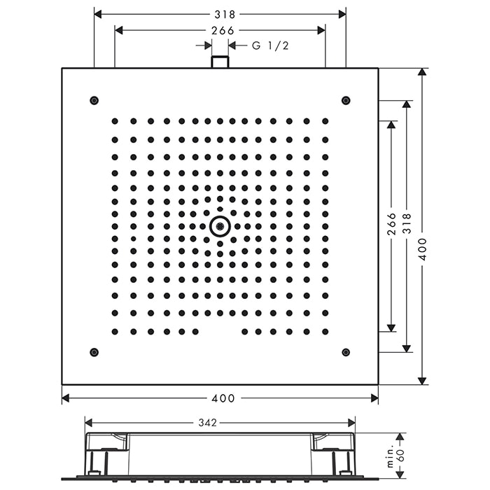 Монтаж верхнего душа Hansgrohe Raindance E осуществляется на потолок с использованием скрытого монтажа, что придает ванной комнате аккуратный и современный вид. Соединительная резьба G 1/2" и возможность подключения к проточным водонагревателям делают установку максимально простой и быстрой.