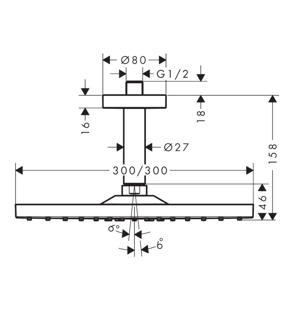 - Размер душевого диска: 300x300 мм