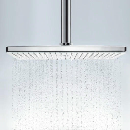 С размером душевого диска 460 x 300 мм, этот верхний душ предлагает три типа струи: Rain, RainStream и Mono. Вы сможете выбрать идеальный режим для вашего настроения и потребностей. При этом расход воды для струи Rain составляет 20 л/мин, RainStream – 18 л/мин, а Mono – 15 л/мин (при 3 бар), что делает его не только комфортным, но и экономичным.