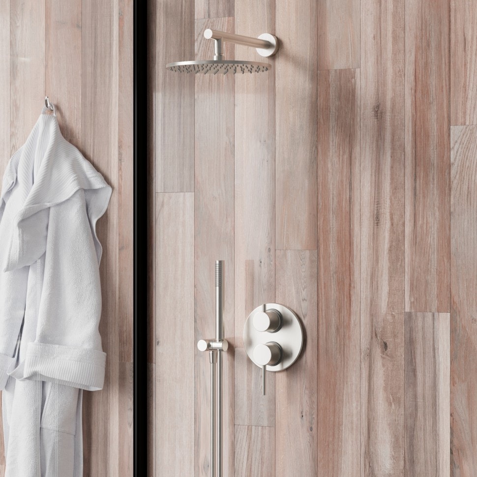 С диаметром 250 мм, этот круглый верхний душ обеспечивает равномерное распределение воды, создавая ощущение настоящего тропического дождя. Цвет никель придаёт ему современный и стильный вид, который отлично впишется в любой дизайн ванной комнаты.