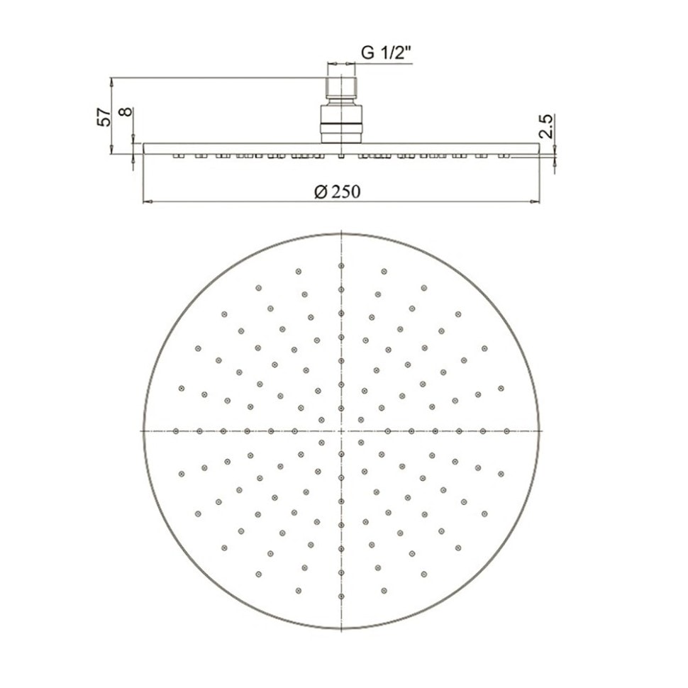 Размеры и монтаж: С диаметром 250 мм этот душ обеспечивает равномерное распределение воды, создавая эффект настоящего дождя. Монтаж осуществляется на потолок, что позволяет сэкономить пространство и сделать вашу ванную комнату более стильной.