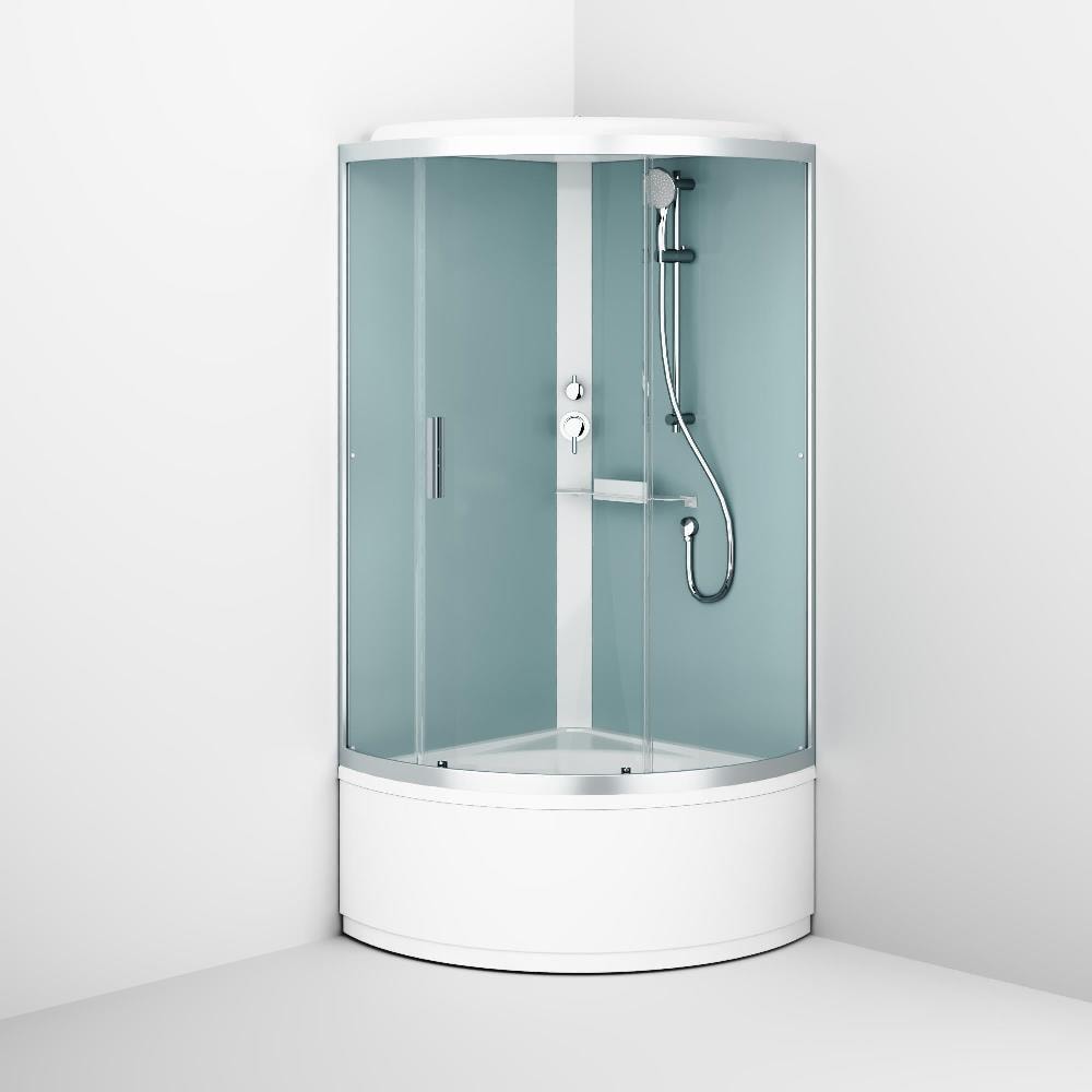 Кабина оснащена высоким (глубоким) поддоном, который обеспечивает комфорт во время принятия душа. Конструкция дверей раздвижная, что делает вход и выход из кабины максимально удобными. Кроме того, наличие крыши защищает от брызг и создает уютную атмосферу.