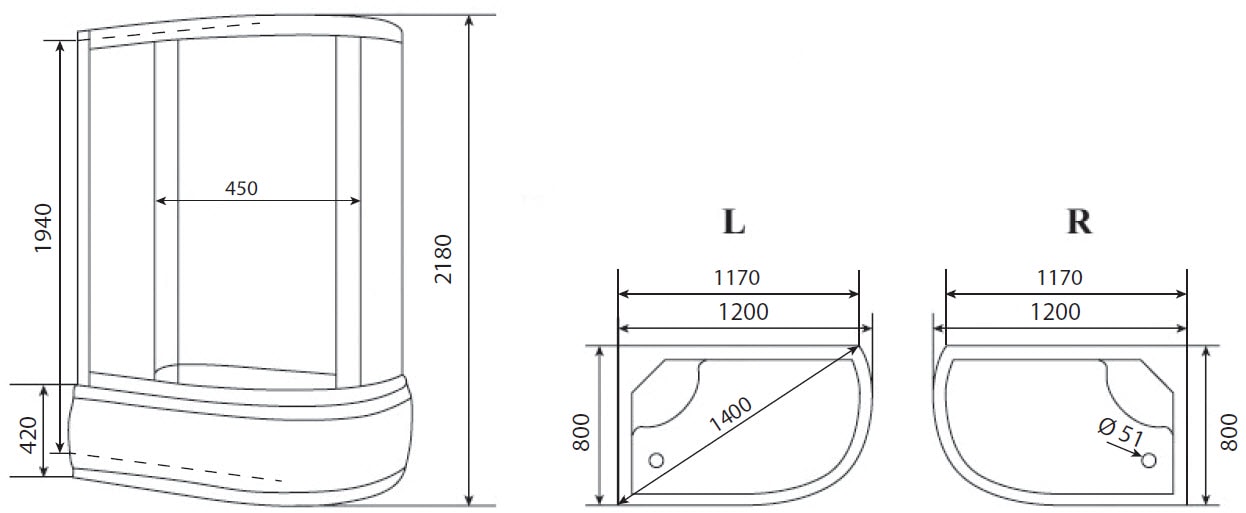 С размерами 1200x800 мм и высотой 2180 мм, Timo Eco TE-0720R обладает асимметричной формой, что позволяет эффективно использовать пространство. Белый цвет и матовое исполнение полотна двери придают ей современный и элегантный вид.
