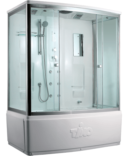 Кабина Timo Lux T-7770 оснащена раздвижными дверями, что позволяет экономить место в ванной комнате. Внутри вы найдёте множество удобств: сенсорная панель управления, FM-радио, стеклянные полочки и зеркало, а также электрическая вентиляция и подсветка. Однорычажный пятирежимный смеситель и гидромассаж спины с 6 джетами подарят вам незабываемые моменты релаксации.