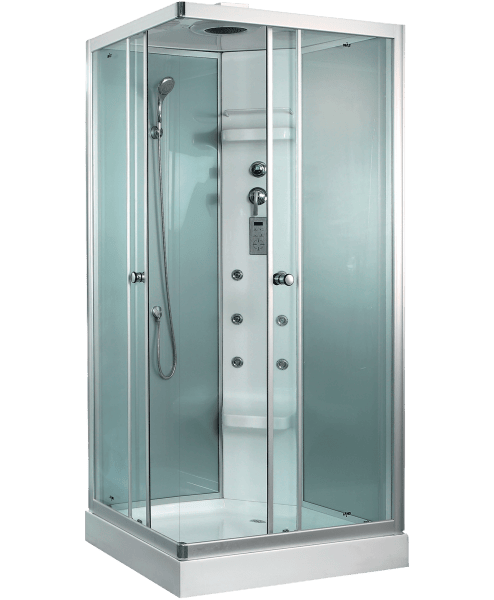 Кабина оснащена раздвижными дверями, что экономит пространство в ванной комнате. Внутри предусмотрено встроенное сиденье, а также гидромассаж с 6 джетами, что позволит вам расслабиться после долгого дня. Сенсорная панель управления, FM-радио, электрическая вентиляция и подсветка добавляют удобства и современности в использование.