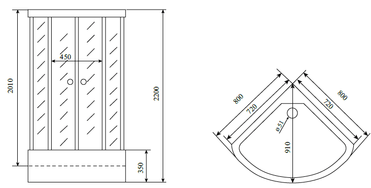 С размерами 800x800 мм и высотой 2200 мм, душевую кабину Timo Standart T-1180 удобно разместить даже в небольшом пространстве. Четвертькруглая форма позволяет максимально эффективно использовать угол ванной комнаты, а раздвижные двери обеспечивают легкий доступ.
