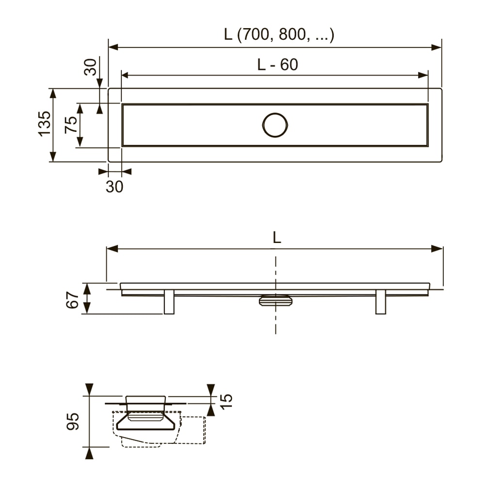 - Дренажный канал из нержавеющей стали;