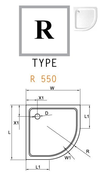 Поддон имеет полукруглую форму с радиусом 550 мм, что позволяет эффективно использовать пространство в ванной. Его размеры: ширина 850 мм и глубина 850 мм, а высота составляет всего 150 мм, что обеспечивает удобный доступ. Купить акриловый поддон Cezares можно прямо сейчас на нашем сайте!
