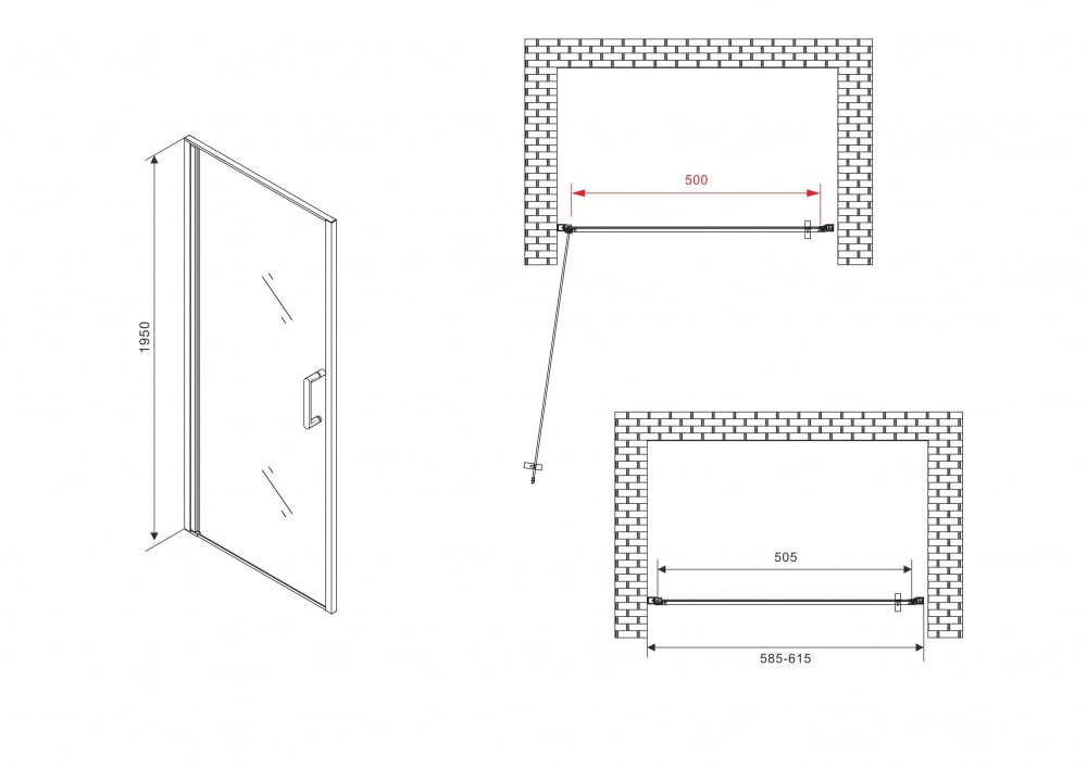 Душевая дверь выполнена из прочного алюминия, что обеспечивает долговечность и устойчивость к воздействию влаги. Высота двери составляет 1950 мм, а ширина — 600 мм, что делает ее подходящей для большинства стандартных душевых ниш. Прямоугольная форма и хромированный цвет придают двери элегантный вид, который легко впишется в любой интерьер.