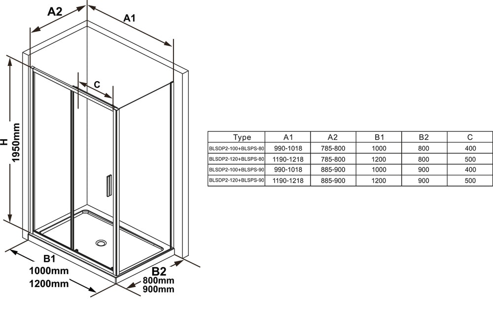 - Размеры: BLSDP2 - 120 см (доступны также размеры 100 см и 80, 90 см для неподвижной стенки BLSPS)