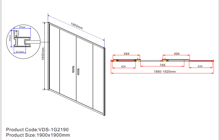 Душевая дверь Vincea Garda выполнена из прочной стали, что обеспечивает долговечность и надежность в эксплуатации. Высота двери составляет 1900 мм, а ширина — 1900 мм, что позволяет легко установить её в нишу и создать комфортное пространство для душа. Раздвижная конструкция дверей обеспечивает удобный доступ и экономит место, что особенно важно для небольших ванных комнат.