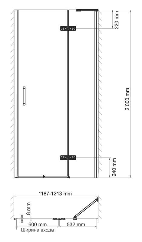 Душевая дверь выполнена из закаленного безопасного стекла толщиной 8 мм, что обеспечивает надежность и долговечность. Стекло обладает противоударными свойствами и соответствует стандарту безопасности EN 12150-1. Благодаря специальной обработке края стекла, вы можете быть уверены в его безопасности — они гладкие и ровные, что исключает возможность порезов.