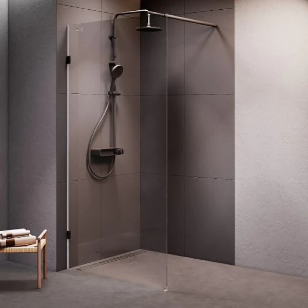 Кроме того, конструкция перегородки оснащена удобным крючком, который позволяет держать полотенца и другие аксессуары под рукой, что делает использование душевой зоны еще более комфортным. Минималистичный и современный дизайн перегородки не только снижает визуальный шум в ванной, но и добавляет стильный акцент в интерьер.