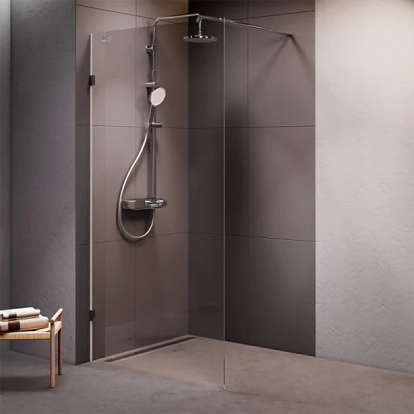 С высотой 1950 мм и шириной 972 мм, перегородка идеально подходит для душевых уголков и ограждений. Материал — прочное стекло толщиной 8 мм, что обеспечивает надежность и долговечность. Анодированный профиль в матовом хроме придаёт изделию элегантный вид, а защитное антиизвестковое покрытие EasyClean значительно упрощает уход за стеклом, предотвращая образование налёта и загрязнений.
