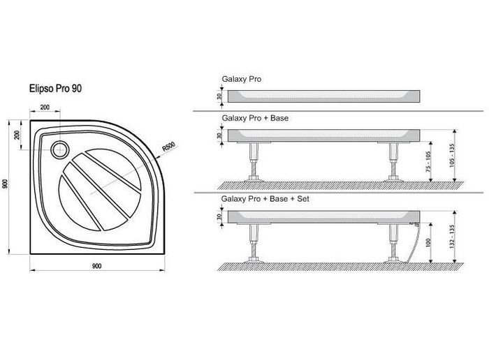 Поддон Elipso Pro идеально подходит для установки с душевыми уголками моделей SKCP4, SKCP4 Free, SKKP6, BLCP4, PSKK3, NRKCP4, ESKK2, BSKK3 и BSKK4. Для установки поддонов Galaxy Pro на пол ванной комнаты рекомендуется использовать ножки Base Galaxy Pro, а при необходимости — переднюю панель с креплением SET, выполненную из того же материала.