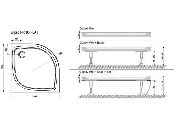 Поддон Elipso Pro Flat легко устанавливается и совместим с душевыми уголками SKCP4, SKCP4 Free, SKKP6, BLCP4, PSKK3, NRKCP4, ESKK2, BSKK3, BSKK4. Для установки поддонов Galaxy Pro Flat на пол ванной комнаты рекомендуется использовать ножки Base Galaxy Pro, а при необходимости — переднюю панель с креплением SET, выполненную из того же материала.