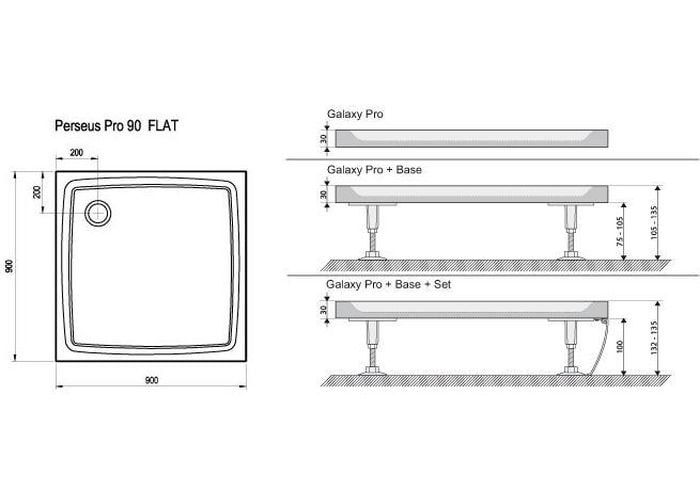 Для установки поддонов Galaxy Pro Flat на пол ванной комнаты необходимо использовать ножки Base Galaxy Pro, а при необходимости — переднюю панель с креплением - SET. Поверхность передней панели выполнена из того же материала, что и сам поддон, что обеспечивает гармоничный внешний вид.