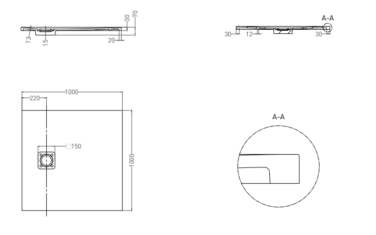 Душевой поддон Oasi выполнен из искусственного мрамора, что обеспечивает не только прочность, но и легкость в уходе. Его квадратная форма и размеры 1000x1000 мм позволяют удобно разместить его в любом пространстве, а высота всего 30 мм делает его практически незаметным, создавая эффект «плавающего» поддона.