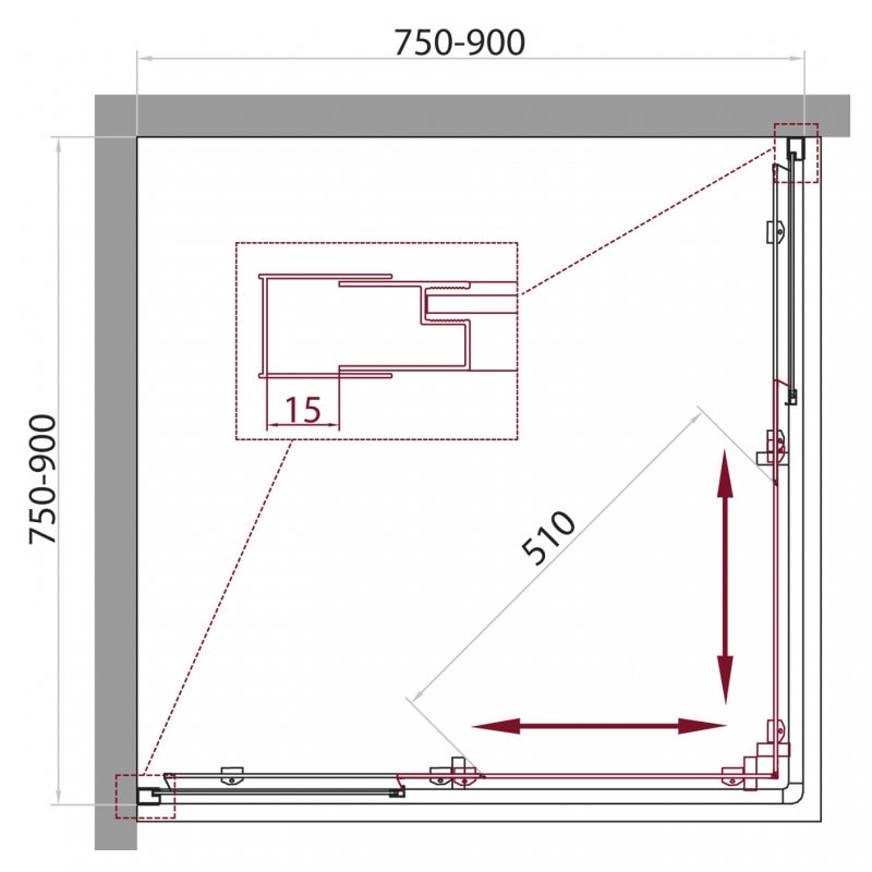 Конструкция душевого уголка включает раздвижные двери, что делает его использование максимально комфортным. Монтаж возможен как на поддон, так и на пол, что позволяет адаптировать уголок под ваши индивидуальные потребности. Регулировка ширины предусмотрена за счет боковых профилей, что обеспечивает легкость установки и настройки.