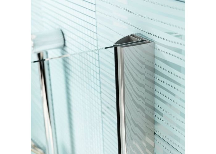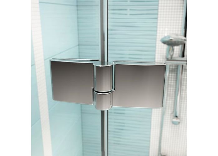 Алюминиевый профиль цвета хром придает уголку современный и элегантный вид, а фиксирующий механизм позволяет надежно зафиксировать двери в основных положениях, обеспечивая их автоматическую доводку при закрывании и приподнимание над пороговой планкой при открывании.